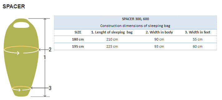 Warmpeace sleeping bags are produced in five sizes 150 cm, 170 cm, 180 cm, 195 cm and 210 cm. These numbers indicate the length of person, which approximately the sleeping bag is designed for, with some size reserve. Real construction dimensions of sleeping bags are in match bellow.